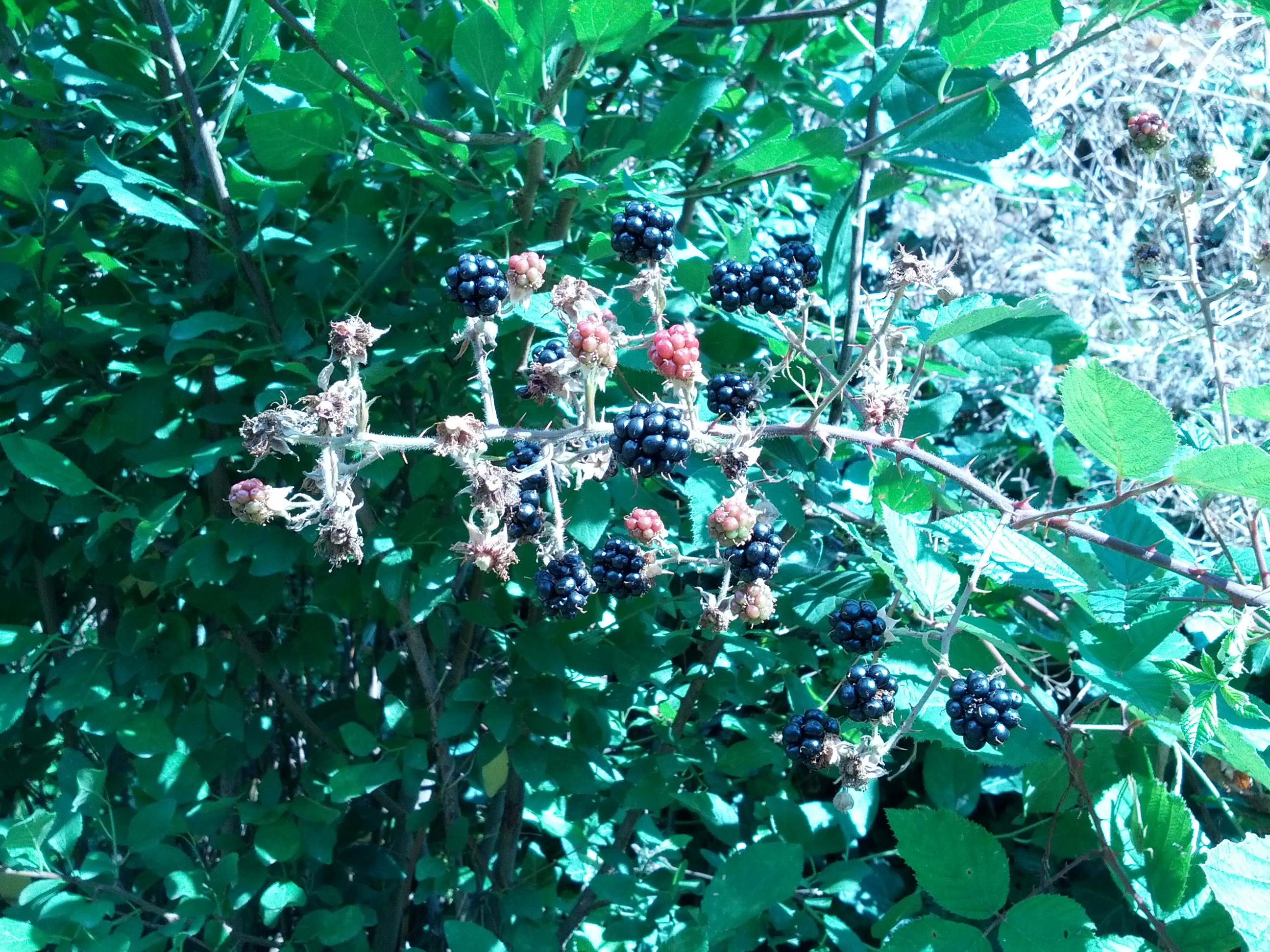 This morning I had wild blackberries on my cereal! I had no idea that the thorny weed I had been meaning to pull out would bear fruit! I have been annoyed brushing past it but I kept putting off doing anything about it. Now, I am glad I procrastinated! Those berries were a sweet surprise! Getting at the fruit was difficult without getting stuck on the thorns, but well worth the effort.