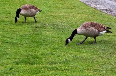 For anyone planting a lawn, these geese were especially worrisome! They considered any seeds their personal lunch buffet! I learned that they would only go after the seeds lying on the surface. Even just a fourth inch of topsoil covering the seed would keep them from being interested.