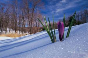 Happy first day of Spring! I do not see too many signs of the season in Cape Cod where we are expecting more snow today. But this gallant purple crocus peeking out through that white stuff tells me that things are changing! The trees here are still bare and the grass is not so green. But this tiny burst of color gives me hope that the landscape will not always be so barren.