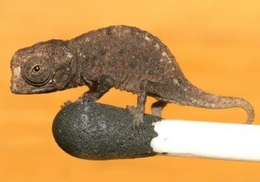 This little guy is thought to be the smallest chameleon ever discovered. From the tip of his tail to his nose he measures just one inch! He is found in Madagascar and this species is threatened with de-forestation. He is too cute to disappear with his weird rotating eyes and curly tail. He, like his bigger counterparts, can change his color pattern when under stress.