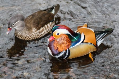 The male species of this duck originating in China and Japan is considered the world’s most beautiful.  Pairs of these birds are sometimes given at the occasion of a marriage as they are symbols of fidelity.  The thought that these ducks promote love and marriage is a centuries-old idea.  Perhaps it came about as they swim in pairs so close together.  And they do return to the same mate in the next mating season rather than establishing a new bond.