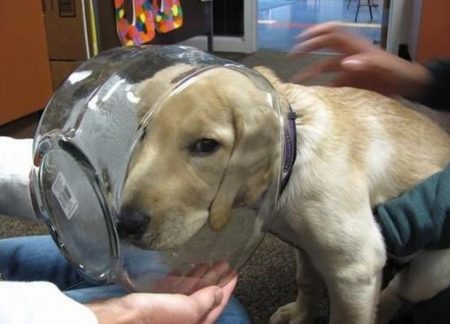 Poor thing. No one wants to see a dog in this kind of distress. At least in his predicament he is not thirsty as I imagine he was going for the water in the bottom of the jar. Probably he stuck his head in there on the sly. Surely, his owners would have loudly discouraged his behavior had they seen it. But there was no hiding what he had done after the fact!