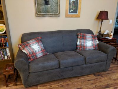 My couch was only three years old and from a reputable company. And yet, being made of bonded leather, it slowly “unbonded” with cracking and chipping. Being that it was structurally sound I decided to invest in a good slip cover. The difference was immediate! I sit on it and it does not move. And best of all, those obvious flaws are covered and it looks brand new!