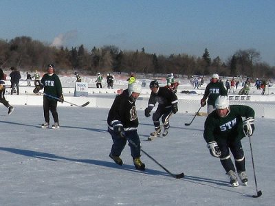 There are some players in this picture that seem more prepared than their fellow hockey enthusiasts. They are the ones with their hockey sticks touching the ice. Regardless of where the hockey puck is, they have their sticks in position and at the ready. That puck can come out of nowhere and with lightening speed, catching a player off guard. The smart player will keep his hockey stick touching the ice as much as possible.