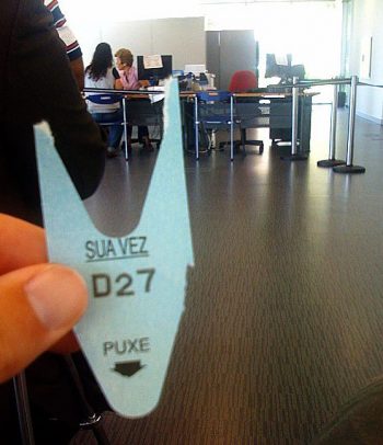 I see fewer and fewer of those machines where one takes a number. But when they are in use I am not sure it makes the waiting any easier. But then, the purpose is more about keeping people from cutting in line than my ease. It does make sense when the waiting area is small and having any kind of line would crowd everyone. But what is really annoying is not seeing the machine until after having waited some!