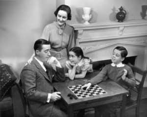 The game of Checkers has been around a lot longer than the 1950’s pictured here.  Checkers is thought to be the oldest game in the world dating back over 4,000 years!  According to inscriptions found in the temple of Thebes, Egyptian kings took time out from overseeing the construction of the pyramids to play checkers!  Lots of famous people have since had a fondness for the game including past presidents, noted scientists and popular sport heroes.  Whoever the player may be however, it is certain that they have a “checkered past.”
