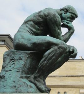This iconic and very recognizable sculpture sits proudly at the Rodin Museum in Paris. The Thinker was originally only 27 inches tall! In 1881 he was created to sit at the top of an entryway called, Gates of Hell. Rodin named him The Poet as he represented Dante. But this piece was so well received that he grew figuratively and literally to the size we see today! His deep concentration gives rise to all sorts of ideas as to the subject of his thoughts!