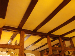 The beams pictured here are from the oldest home in a village in Germany. They date back to 1357 and they are just beautiful! They add such warmth and coziness as well as stability to the ceiling. I see lots of these beamed ceilings in Europe. I shudder to think what the termites in southern California would try to do to them!