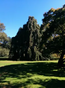 Despite living almost three decades in France I had never seen a European Weeping Beech tree. But in Rhode Island, on the grounds of the Château sur Mer in Newport I saw this incredible sight! The drooping branches were so thick, the trunk was not even visible. The English call it the “upside down tree!” Several species of trees including the Weeping Willow are called, “Weeping,” if they grow pendulous branches. I am not sure I would want such a weepy looking tree in my yard.