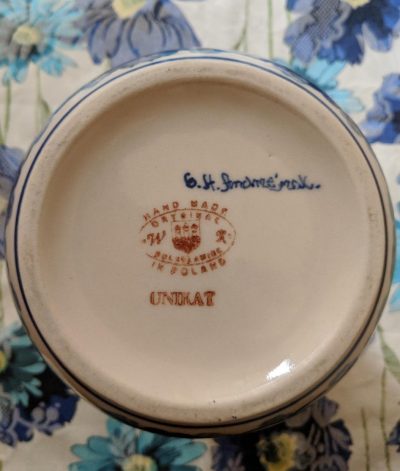 These broken pieces of bisque look pretty pathetic. For whatever reason they did not survive their first firing during the process of becoming beautiful pottery. The first firing is to strengthen the clay. Their glazing, unique colors and design can only be applied after this important step. When touring a Polish pottery factory I remember seeing a huge bin full of broken bisque pieces. Our guide explained that rather than throw them out, they would melt them all down to start again.